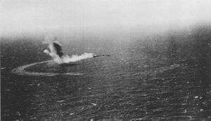 On 4 May, from a position 100 nmi (120 mi; 190 km) south of Guadalcanal (11°10′S 158°49′E / 11.167°S 158.817°E), a total of 60 aircraft from TF 17 launched three consecutive strikes against Shima's forces off Tulagi. Yorktown's aircraft surprised Shima's ships and sank the destroyer Kikuzuki (09°07′S 160°12′E / 9.117°S 160.200°E) and three of the minesweepers, damaged four other ships, and destroyed four seaplanes which were supporting the landings. The U.S. lost one torpedo bomber and two fighters in the strikes, but all of the aircrew were eventually rescued. After recovering its aircraft late in the evening of 4 May, TF 17 retired towards the south. In spite of the damage suffered in the carrier strikes, the Japanese continued construction of the seaplane base and began flying reconnaissance missions from Tulagi by 6 May.[32]