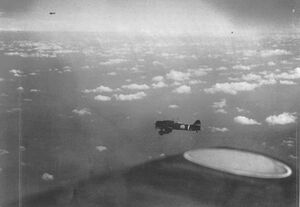 At 08:16 on 5 May, TF 17 rendezvoused with TF 11 and TF 44 at a predetermined point 320 nmi (370 mi; 590 km) south of Guadalcanal (15°S 160°E / 15°S 160°E). At about the same time, four Grumman F4F Wildcat fighters from Yorktown intercepted a Kawanishi H6K reconnaissance flying boat from the Yokohama Air Group of the 25th Air Flotilla based at the Shortland Islands and shot it down 11 nmi (13 mi; 20 km) from TF 11. The aircraft failed to send a report before it crashed, but when it didn't return to base the Japanese correctly assumed that it had been shot down by carrier aircraft.[34]