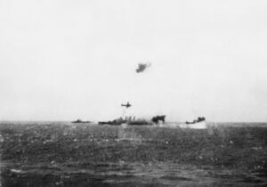 1 fleet carrier sunk, 1 destroyer sunk, 1 oiler sunk, 1 fleet carrier damaged, 69 aircraft destroyed.[3] 656 killed[4] |