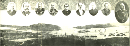 By May, the Japanese had landed forces on the Liaodong Peninsula and in August began the siege of the naval station. On 9 August, Admiral Wilgelm Vitgeft, commander of the 1st Pacific Squadron, was ordered to sortie his fleet to Vladivostok,[6] link up with the Squadron stationed there, and then engage the Imperial Japanese Navy (IJN) in a decisive battle.[6] Both squadrons of the Russian Pacific Fleet would ultimately become dispersed during the Battle of the Yellow Sea, where Admiral Vitgeft was killed by a salvo strike from the Japanese battleship Japanese battleship Asahi on 10 August, and the Battle off Ulsan on 14 August 1904. What remained of Russian Pacific naval power would eventually be sunk in Port Arthur in December 1904.[7]