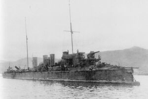 Destroyer Grozniy increased speed being chased by Kagerō, but Byedoviy slowed down and stopped in the face of firing and approaching Sazanami while raising a white flag.[55][o] Grozniy was able to keep sufficient distance from Kagerō, exchanging just a few long-distance shots at about 18:30, before nightfall.[56] She became one of the three warships reaching Vladivostok after surviving the battle.