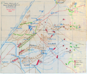 While the Ottoman army positions at Gaza had been reconnoitred and photographed from the air, it was still necessary for the staff of the Anzac and Imperial Mounted Divisions, along with the Commander of the Royal Artillery (CRA), to carry out personal reconnaissances of the Wadi Ghuzzeh.[63] By the afternoon all likely crossings had been carefully reconnoitred, and the chosen crossing near the Wadi Sharta, which was to be used the next day, marked.[82]