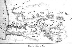 1. ^ William Howard Russell, The British Expedition to the Crimea, Routledge & co. 1858. p. 154 "The English army present at the Alma, in round numbers as stated in the official returns, consisted of 27,000 men; the French, of 25,000; the Turks, of 6,000 men."