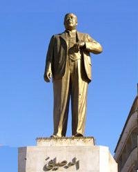 تمثال برونزي لمعروف الرصافي بالقرب من جسر الشهداء، بغداد.