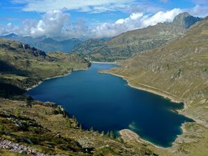 In the east, Lake Iseo forms its boundary which the Oglio from the Camonica Valley flows through. Minerals are found in the area of Trescore Balneario and San Pellegrino (the source of the mineral water of the same name) and other places.
