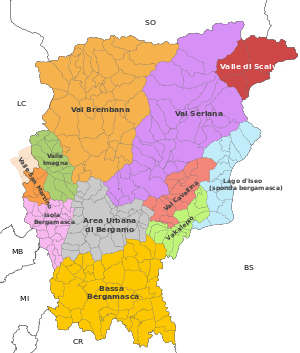 Map of the historical regions of Bergamo