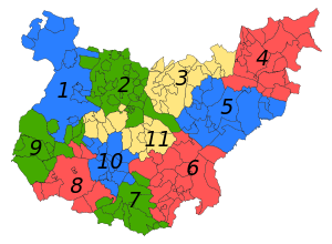 The Province of Badajoz is divided into 165 municipalities. After Badajoz, the capital, the main towns in the province are Almendralejo, Azuaga, Don Benito, Olivenza, Jerez de los Caballeros, Mérida, Zafra, Montijo and Villanueva de la Serena. There are also traditional comarcas (shires, but with no administrative role) in the province, including La Siberia and Llanos de Olivenza. The capital city of Badajoz is the most important commercial center of the province.[1] The Council of Badajoz has its seat in this city.