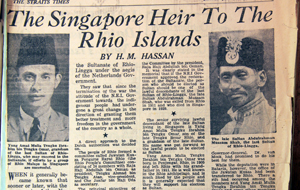 In 1812, the Johor-Riau Sultanate experienced a succession crisis.[41] The death of the Mahmud Shah III in Lingga left no heir apparent.[بحاجة لمصدر] Royal custom required that the succeeding sultan must be present at his predecessor's deathbed. However at the time Mahmud Shah III died, the eldest prince, Tengku Hussein, was in Pahang to celebrate his marriage to the daughter of the Bendahara (governor).[42] The other candidate was Tengku Hussein's half-brother, Tengku Abdul Rahman. To complicate matters, neither of the candidates was of full royal blood. The mother of Tengku Hussein, Cik Mariam, owed her origin to a Balinese slave lady and a Bugis commoner.[43] Tengku Abdul Rahman had a similarly lowborn mother, Cik Halimah. The only unquestionably royal wife and consort of Mahmud Shah was Engku Puteri Hamidah, whose only child had died an hour after birth.[44] In the following chaos, Engku Puteri was expected to install Tengku Hussein as the next sultan, because he had been preferred by the late Mahmud Shah. Based on the royal adat (customary observance), the consent of Engku Puteri was crucial as she was the holder of the Cogan (Royal Regalia) of Johor-Riau, and the installation of a new sultan was only valid if it took place with the regalia. The regalia was fundamental to the installation of the sultan; it was a symbol of power, legitimacy and the sovereignty of the state.[45] Yang Dipertuan Muda Jaafar (then-viceroy of the sultanate) supported the reluctant Tengku Abdul Rahman, adhering to the rules of royal protocol, as he had been present at the late Sultan's deathbed.[46]