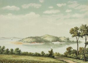 Pulau Penyengat (Lit: Wasp island), lithography of an original watercolour by J.C. Rappard. ca. 1883–1889.