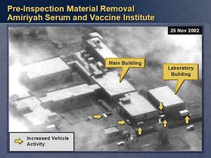 المصل واللقاح في معهد العامرية، العراق، صورة التقطها ساتل الاستطلاع الأمريكي في نوفمبر 2002.