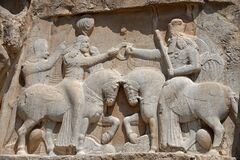 Rock relief of Ardashir I receiving the ring of kingship by the Zoroastrian supreme god Ahura Mazda.