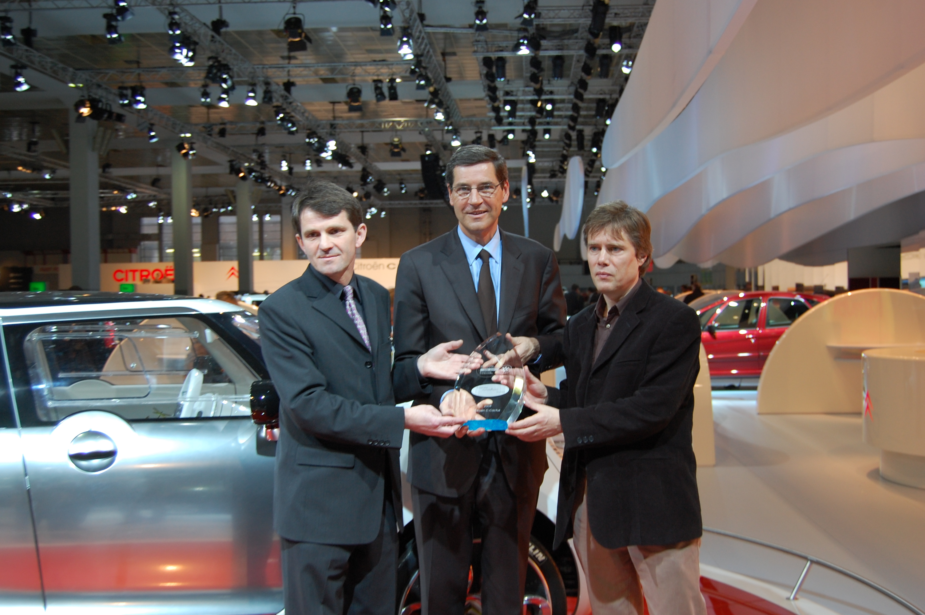 Français : Gilles Michel (au centre) recevant le "Prix de l'Innovation Technologique" pour C-Cactus au Salon de l'Auto de Bruxelles en janvier 2008 |