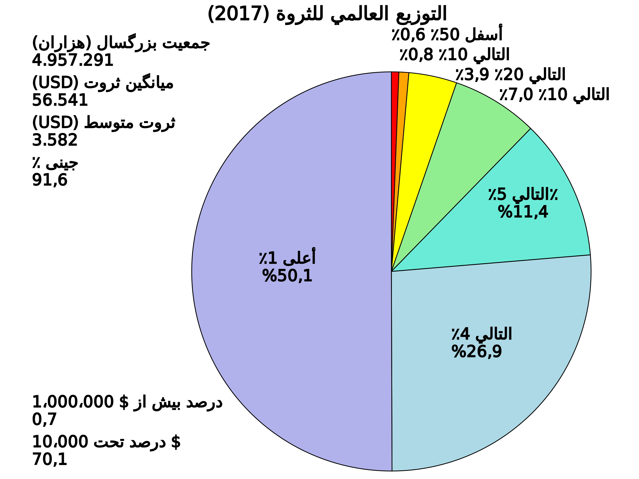 English: Wealth shares of different percentile groups in 2017. Data from Credit Suisse Global Wealth Databook Table 3-1, 6-5 Page 115, 156 |