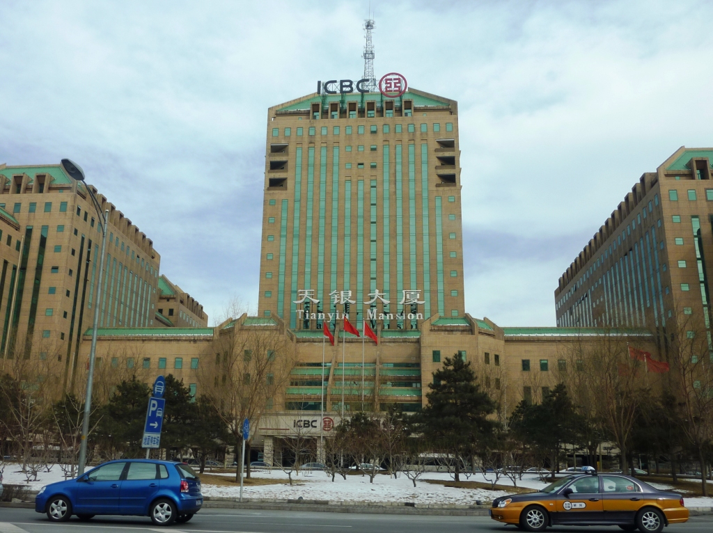 English: Tianyin Mansion in 2 Fuxingmen South Street, Beijing, with a ICBC branch located inside |