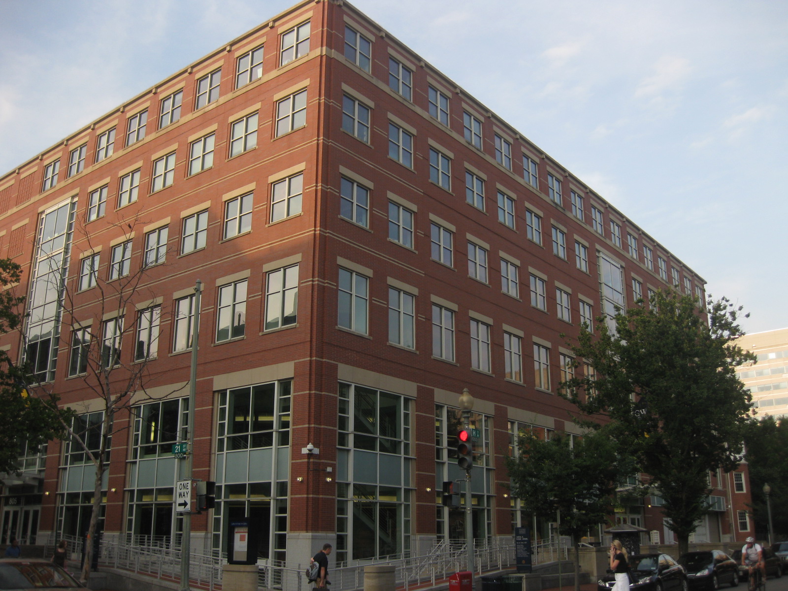 English: The Media and Public Affairs building at 805 21st St, the corner of 21st and H Streets. |