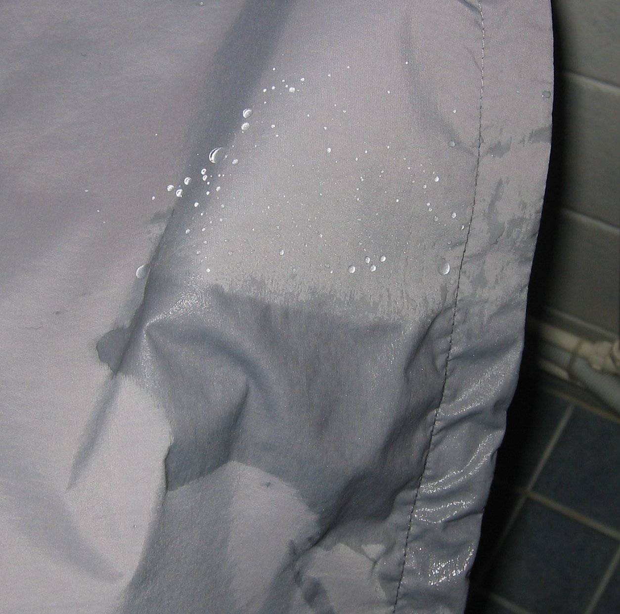 | Description | Effect of water repellent on a shell layer jacket (Haglöfs Heli II) |