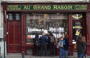 Au grand Rasoir, a Royal warrant holder with Royal crest.