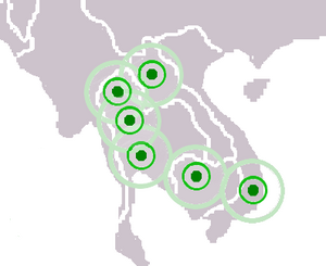One of the earliest foreign sources to mention Xiān are the Đại Việt texts compiled during the reign of Lý Anh Tông, says merchants from Xiān Kingdom (暹羅) and others arrived at Hǎidōng (تشو هان: 海東) and requested permission to trade and set up a trading post at Yún tún (تشو هان: 雲屯) في 1149. Other requests for trade were sent في 1241. و 1360.[24] Xian also sent tributes to Đại Việt in 1182 و 1334.[25] في 1313–1315, Xiān attempted to annex Champa but failed due to the reinforcements from Đại Việt.[26][27]:121–3 There was also a record of Siamese led by Passara, son of the king of Siam, settled in Java and established the city of Passaraan in 800.[28]:xvi