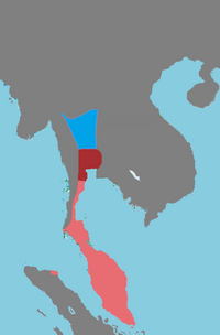 The Ayutthaya Kingdom (red) and the Northern Cities (blue) in the 14th century
