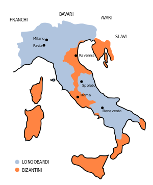 {{cite book}}: Check|isbn=value: invalid character (help); Cite has empty unknown parameters:|dataoriginale=,|curatore=,|cid=,|month=,|chapterurl=,|mesediaccesso=,|annodiaccesso=,|meseoriginale=, and|coauthors=(help)CS1 maint: unrecognized language (link) - Paolo Delogu. Longobardi e Bizantini in Storia d'Italia, Torino, UTET, 1980. ISBN 88-02-03510-5.