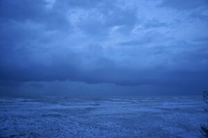 وعلى العكس يتسع النطاق الذي تهب فيه الرياح العكسية الغربية ليشمل مناطق أكبر من الأطراف الجنوبية الغربية والجنوبية الشرقية من الجزيرة ويسبب هطول أمطار غزيرة فوقها.