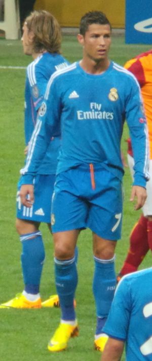 كريستيانو رونالدو دوس سانتوس أفييرو[40](بالبرتغالية: Cristiano Ronaldo dos Santos Aveiro)، (مواليد 5 فبراير 1985)، المعروف بـ كريستيانو رونالدو. هو لاعب كرة قدم برتغالي يلعب في مركز الجناح الأيسر أو كمهاجم بنادي يوفنتوس الايطالي الذي يشارك في الدوري الايطالي وهو حالياً قائد منتخب البرتغال لكرة القدم، وهو الهداف التاريخي لكل من منتخب بلاده[41] وناديه السابق ريال مدريد.[42] يُعتبر رونالدو حسب الكثيرين وبناءً على الكثير من الإستفتاءات أحد أفضل اللاعبين في جيله، بل وحتى في تاريخ لعبة كرة القدم، [13][14][43][44] وقد اختاره الإتحاد البرتغالي لكرة القدم أفضل لاعب في تاريخ البرتغال مطلع عام 2015،[45] وهو أكثر من سجل أهدافاً منذ بداية القرن الحادي والعشرين.[46]