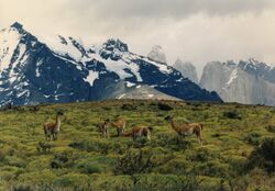 In the far south (Chile Austral), which extends from Valdivia through the Chacao Channel to Cape Horn, the Andes and the South Pacific meet. This district of the country is mountainous, heavily forested and inhospitable. The deeply indented coastline is filled with islands which preserve the general outline of the continent southward to the Fuegian archipelago, the outside groups forming a continuation of the Chilean Coast Range. The heavy and continuous rainfall throughout this region, especially in the latitude of Chiloé, gives rise to a large number of rivers and lakes. Farther south this excessive precipitation is in the form of snow in the Andes, forming glaciers at a comparatively low level which in places discharge into the inlets and bays of the sea. The extreme southern part of this region extends eastward to the Atlantic entrance to the Strait of Magellan, and includes the greater part of the Isla Grande de Tierra del Fuego with all the islands lying south and west of it. There are some comparatively level stretches of country immediately north of the Strait, partly forested and partly grassy plains, where sheep farming has been established with some degree of success, but the greater part of this extreme southern territory is mountainous, cold, wet and inhospitable. The perpetual snow-line here descends to 1,000 to 1,200 m (3,500 to 4,000 ft) above sea-level, and the forest growth does not rise above an altitude of 300 to 450 m (1,000 to 1,500 ft).[1]
