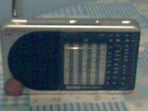 Modern example of a portable radio with 9 different Shortwave bands. A British penny has been placed by it to give a better example of size.