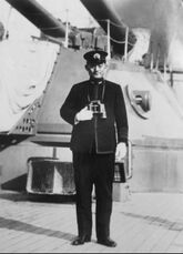 After the war, he served as chief gunnery officer on the cruiser Niitaka, battleship Shikishima, and cruiser Tone.[5] After his promotion to lieutenant commander in December 1912, he graduated from the Naval War College and was assigned as naval attaché to Russia during the height of World War I, from 1915 to 1917. While overseas, he was promoted to commander; after the collapse of the Russian Empire, he was recalled to Japan and later became executive officer on the battleship Asahi.[5] He rose to the rank of captain in December 1920 and was subsequently sent as naval attaché to Poland from 1921 to 1922.