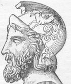 "خوذة ملتيادس". الخوذة قدمها ملتيادس كقربان إلى معبد زيوس في اولمپيا، وهو الذي خطط للنصر الأثيني على الفرس في معركة ماراثون. النقش على الخوذة: ΜΙLTIAΔES. متحف اولمپيا الأثري.