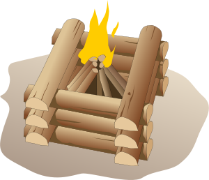 A log cabin fire-build likewise begins with a tinder pile. The kindling is then stacked around it, as in the construction of a log cabin. The first two kindling sticks are laid parallel to each other, on opposite sides of the tinder pile. The second pair is laid on top of the first, at right angles to it, and also on opposite sides of the tinder. More kindling is added in the same manner. The smallest kindling is placed over the top of the assembly. Of all the fire-builds, the log cabin is the least vulnerable to premature collapse, but it is also inefficient because it makes the worst use of convection to ignite progressively larger pieces of fuel. However, these qualities make the log cabin an ideal cooking fire as it burns for a long period of time and can support cookware.[9]