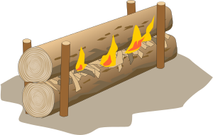 This fire is unique because it uses only one piece of fairly-sized wood as its fuel. The log is either partially cut (though some variants involve completely splitting it) and then set upright. Ideally, the log should be cut evenly and placed on a level surface for stability. Tinder and kindling are added to the preformed chamber created by the initial cuts. Eventually, the fire becomes self-feeding. The flat, circular top provides a surface for placing a kettle or pan for cooking, boiling liquids, and more. In some instances, the elevated position of the fire can serve as a better beacon than a typical ground-based campfire.[11][12]