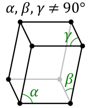 In crystallography, the triclinic (or anorthic) crystal system is one of the seven crystal systems. A crystal system is described by three basis vectors. In the triclinic system, the crystal is described by vectors of unequal length, as in the orthorhombic system. In addition, the angles between these vectors must all be different and may not include 90°.