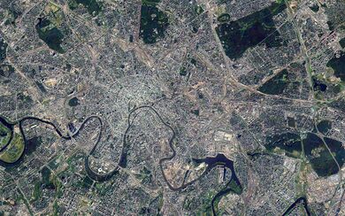 استمع)) is the capital and largest city of Russia. The city stands on the Moskva River in Central Russia, with a population estimated at 12.4 million residents within the city limits,[13] while over 17 million residents in the urban area,[14] and over 20 million residents in the Moscow Metropolitan Area.[15] The city covers an area of 2،511 متر كيلومربع (970 sq mi), while the urban area covers 5،891 متر كيلومربع (2،275 sq mi),[14] and the metropolitan area covers over 26،000 متر كيلومربع (10،000 sq mi).[15] Moscow is among the world's largest cities, being the largest city entirely within Europe, the largest urban area in Europe,[14] the largest metropolitan area in Europe,[15] and also the largest city by land area on the European continent.[16]