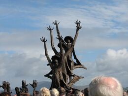 A bronze statue commemorating The Flight of the Earls at Rathmullan in north County Donegal.
