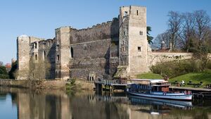 Downstream of Nottingham it passes Radcliffe-on-Trent, Stoke Bardolph and Burton Joyce before reaching Gunthorpe with its bridge, lock and weir. The river now flows north-east below the Toot and Trent Hills before reaching Hazelford Ferry, Fiskerton and Farndon. To the north of Farndon, beside the Staythorpe Power Station the river splits, with one arm passing Averham and Kelham, and the other arm, which is navigable, being joined by the Devon before passing through the market town of Newark-on-Trent and beneath the town's castle walls. The two arms recombine at Crankley Point beyond the town, where the river turns due north to pass North Muskham and Holme to reach Cromwell Weir, below which the Trent becomes tidal.[11]