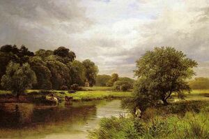 Henry Hotspur's speech complaining about the river has been linked to the meanders near West Burton,[23] however, given the wider context of the scene, in which conspirators propose to divide England into three after a revolt, it is thought that Hotspur's intentions were of a grander design, diverting the river east towards the Wash such that he would benefit from a much larger share of the divided Kingdom. Downstream of Burton upon Trent, the river increasingly trends northwards, cutting off a portion of Nottinghamshire and nearly all of Lincolnshire from his share, north of the Trent.[24][25] The idea for this scene, may have been based on the disagreement regarding a mill weir near Shelford Manor, between local landowners Gilbert Talbot, Earl of Shrewsbury, and Sir Thomas Stanhope which culminated with a long diversion channel being dug to bypass the mill.[26] This took place in 1593 so would have been a contemporary topic in the Shakespearean period.[24]