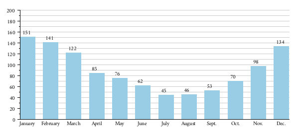 Average monthly flows of Trent in cubic metres per second measured at Colwick (Nottingham).[68]
