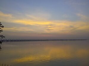 These put together account for 24.2% of the total basin area.[14] The rivers annual average water inflows are nearly 110 billion cubic metres.[15] Nearly 50% of the water availability is being harnessed. The water allocation from the river among the riparian states are governed by the Godavari Water Disputes Tribunal. The river has highest flood flows in India and experienced recorded flood of 3.6 million cusecs in the year 1986 and annual flood of 1.0 million cusecs is normal.[16][17]