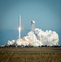 صاروخ أنتارس (يسار)؛ ومركبة الفضاء سگنس (يمين) تحمل المهمة كندارم2 إلى محطة الفضاء الدولية.