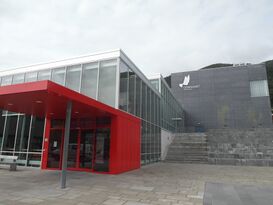 The building also houses a cinema, and a library and is connected to the local upper secondary school. The main stage is 14-متر (46 ft) wide, and 10 m (33 ft) deep, with a capacity of 530 seats. Of these, 218 seats are located in the gallery. When the orchestra pit is in use, capacity is 484. The chamber is specially constructed and adapted for acoustic music, using the same techniques as found in the Oslo Opera House.[26]
