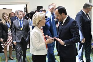 At a European Council summit on 26 October 2023[22] and at the 2023 Paris Peace Forum, organized by French president Emmanuel Macron, Christodoulides presented his initiative to open a maritime corridor between Cyprus and Gaza, intending to deliver aid to Gaza during the Gaza war. Due to the small distance between Cyprus and the conflict zone, Christodoulides suggested utilizing Larnaca's port for shipping significant amounts of humanitarian relief to Gaza by sea. The aid would be collected, inspected, and stored in Cyprus; after daily checks by a joint committee, including Israel, the aid would be sent to Gaza. The vessels would be accompanied by warships and would arrive at a designated neutral area on the coast of Gaza.[23][24] Cypriot media have credited retired rear admiral Costas Fitiris with volunteering as one of the principal drafters and operational designers of the Amalthea plan, before his later appointment as Minister of Justice and Public Order.[25][26]