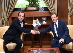 Christodoulides with Israeli president Isaac Herzog in May 2023