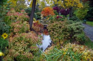 Located on the opposite side of the harbour, the Dartmouth Commons is a large park next to Downtown Dartmouth laid out in the 1700s. It is home to the Leighton Dillman gardens and various sports grounds. Nearby, the Dartmouth waterfront trail stretches from Downtown Dartmouth to Woodside. Among residents of central Dartmouth, the area around Sullivan's Pond and Lake Banook is popular for strolling and paddling. The forested Shubie Park, through which the historic Shubenacadie Canal runs, is a major park in suburban Dartmouth.
