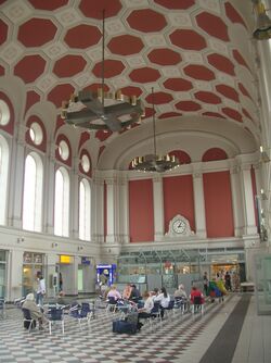 Hamm has three stations, the main railway station Hamm (Westfalen) and two minor stations, one in Bockum-Hövel and the other one in Heessen. The main station is one of the biggest railway hubs in Germany, and connected with one of the largest marshalling yards in Europe, the latter now only partly operating. Notable is the railway station for its Art Deco Gründerzeit inspired building styles. Hamm has been connected to the rail since 2 May 1847. Its huge railroad yard—Europe's biggest at the time[3]—was bombed repeatedly during World War II,[4][5] as was the city itself (in December 1944 it was hit by eleven raids on one day).[3]