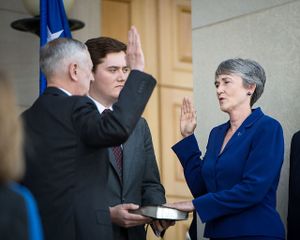 23. ^ Giaritelli, Anna (May 16, 2017). "Heather Wilson sworn in as Air Force secretary during emotional ceremony". The Washington Examiner. Retrieved May 16, 2017.