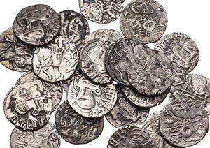 Nine principal issues of Bull and Horseman silver coins and only one issue of corresponding copper coins of Spalapatideva have become available. As many as five Elephant and Lion type of copper coins of Shri Vakkadeva are available and curiously the copper issues of Vakka are contemporaneous with the silver issues of Spalapati.[19]