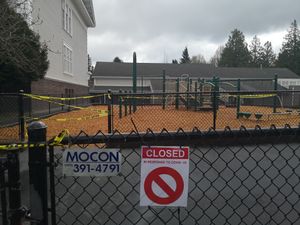 Playground at a Seattle elementary school is closed due to the epidemic on 25 March