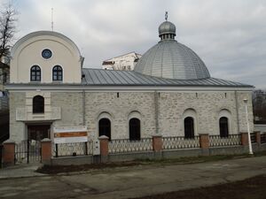 Iași also figures prominently in Jewish history, with the first documented presence of Sephardi Jews from the late 16th century. The oldest tomb inscription in the local cemetery probably dates to 1610.[18] By the mid-19th century, owing to widespread Russian Jewish and Galician Jewish immigration into Moldavia, the city was at least one-third Jewish, growing to 50% Jewish by 1899 according to the Great Geographic Dictionary of Romania cited by JewishGen.[19] The Podu Roș Synagogue was built in Iași, circa 1810, by Avraham Yehoshua Heshel of Apta, but the synagogue became mostly Misnagdic not long thereafter.