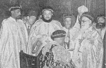 1- الأنبا باسيليوس أسقف شوا التى تقع أديس أبابا ضمنها. وقد اشترك مع البابا يوساب فى تأدية الشعائر المقدسة ستة من المطارنة القبط وعدد كبير من الكهنة ، وبعد الإنتهاء من القداس حتى تقدم الأساقفة الأثيوبيين واحدا فواحداً إلى البابا يوساب وأقسموا يمين الولاء وتلقوا منه نصائحه الأبوية.